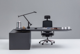Tento výnimočný manažérsky stôl je výškovo nastaviteľný. Výšku pracovnej dosky môžete regulovať v rozmedzí 750 až 1160 mm. Do pohybu ju dostanete jednoducho pomocou pamäťového ovládača. Elektromotor má tichý chod, tiež plynulý rozjazd a dojazd. Súčasťou je inteligentný antikolízny systém, ktorý zastaví pohyb stolovej dosky v prípade nárazu pri nastavovaní výšky. Gravity je názov modelovej rady stola a asi každý tuší prečo. Akoby pri tomto stole gravitácia ani neexistovala, pričom maximálne zaťaženie stola je 70 kg. Asi Vás neprekvapí váha stola, tá je viac ako 660 kg. Stane sa perlou Vašej kancelárie a Vaše návštevy to bezpochyby očarí. Pokiaľ máte radi luxus a originalitu, tak ste práve našli chýbajúci puzzle dielik do Vašej skladačky. Celá nosná konštrukcia je ukrytá v bočnej skrinke a zaberá väčšinu priestoru skrinky. Napriek tomu je to vymyslené veľmi sofistikovane a manažér v skrinke nájde dostatok úložného priestoru pre dokumenty, či iné dôležité veci, ktoré musia byť vždy po ruke. Pracovná plocha Vám ponúka veľkorysý priestor na prácu, až 2200 x 1000 mm. Celková šírka vrátane skrinky je 2400 mm a hĺbka 1600 mm. Súčasťou pracovnej plochy môže byť praktický elektropanel. Dizajn manažérskeho stola Gravity spočíva v kombinácii nezameniteľného konštrukčného riešenia a exkluzívnych materiálov. Kvalitná dyha, či vysokotlaké lamináty v exkluzívnych farbách Vám dovoľujú vytvoriť si vlastnú kombináciu farieb, čím vznikne jedinečný kúsok. My Vám však pri výbere radi pomôžeme. Farebné kombinácie stolových dosiek, farby podnožia, ale aj iné možnosti výberu detailov a komponentov, to všetko vieme prispôsobiť Vašim požiadavkám. Nenechajte si ujsť možnosť výberu ďalších exkluzívnych produktov z modelovej rady Gravity. Konferenčný stolík, rokovací stôl, alebo úložné priestory v zmysle dizajnu Gravity. Pokiaľ sa Vám tento dizajn páči, ste moderný líder. Nebuďte len moderný, ale aj odvážny a vytvorte si kanceláriu ako z najlepšieho sna. Príďte si osobne vyskúšať výhody elektricky výškovo nastaviteľného stola, ktorý máme v showroome vystavený.