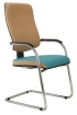 Pohodlná konferenčná stolička na lyžinách s podrúčkami. Chrómová konštrukcia čalúnená látkou Cendal.